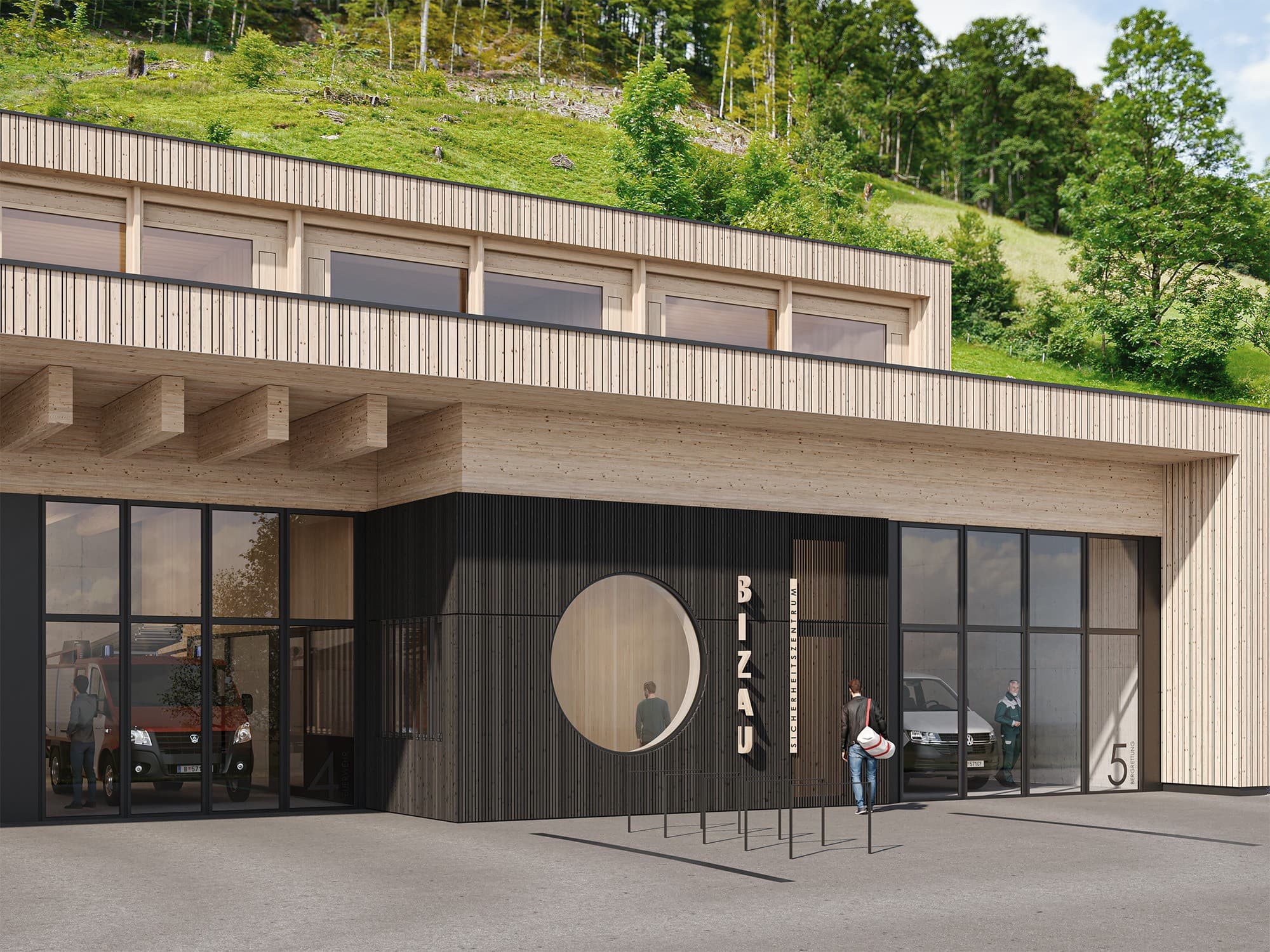 Die Gemeinde Bizau plant den Neubau eines Sicherheitszentrums (Feuerwehr / Bergrettung) samt Veranstaltungsraums. Das Grundstück befindet sich in prominenter Lage, mitten im Dorfkern und angrenzend an den Fußballplatz. Die Bauarbeiten haben begonnen und es wurde diese Woche mit den Aushubarbeiten gestartet.
