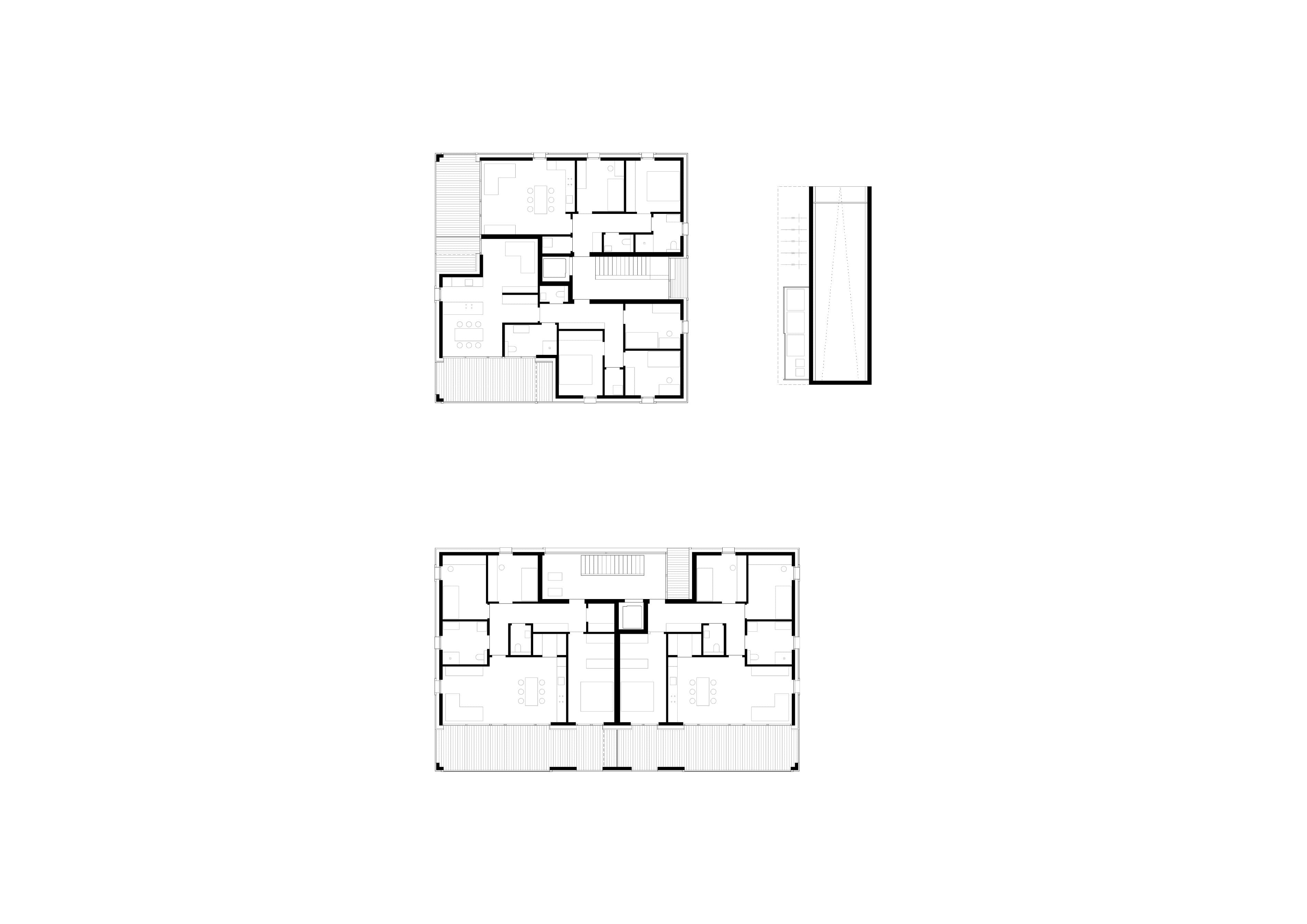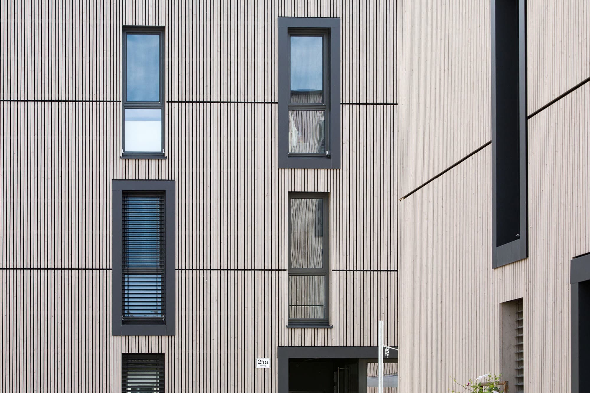 Inmitten der dörflichen Einfamilienhausstruktur in Feldkirch Nofels wurde die Kleinwohnanlage Bittweg mit zwei dreigeschossigen Gebäuden in Massivbauweise errichtet. Der Städtebau orientiert sich an der umliegenden Bebauung und schafft damit eine Brücke zwischen der Typologie „Einfamilienhaus“ und der eines Mehrfamilienhauses. Die gradlinige Architektursprache mit Holzfassade soll dem Ensemble einen zeitlosen und eleganten Charakter geben und somit zu einer Aufwertung der Umgebung beitragen.