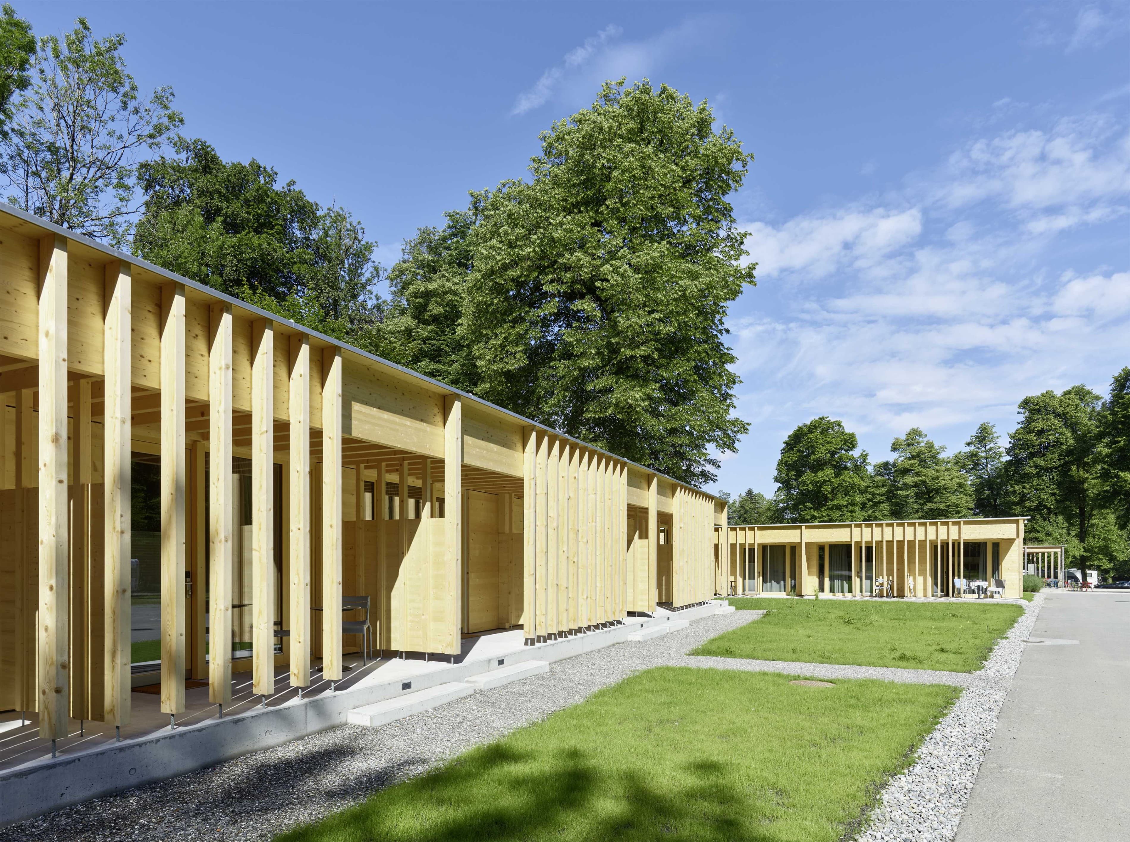 Im Zuge der Erweiterung wurde der Campingplatz nun mit 14 vollausgestatteten Appartements ergänzt. Die beiden Pavillons wurden so gestaltet, dass sie sich baugleich in das bestehende Ensemble der Anlage einfügen. Bei der Verortung der Gebäude wurde speziell darauf geachtet, dass kein Bestandsbaum im Zuge der Erweiterung gefällt werden muss.