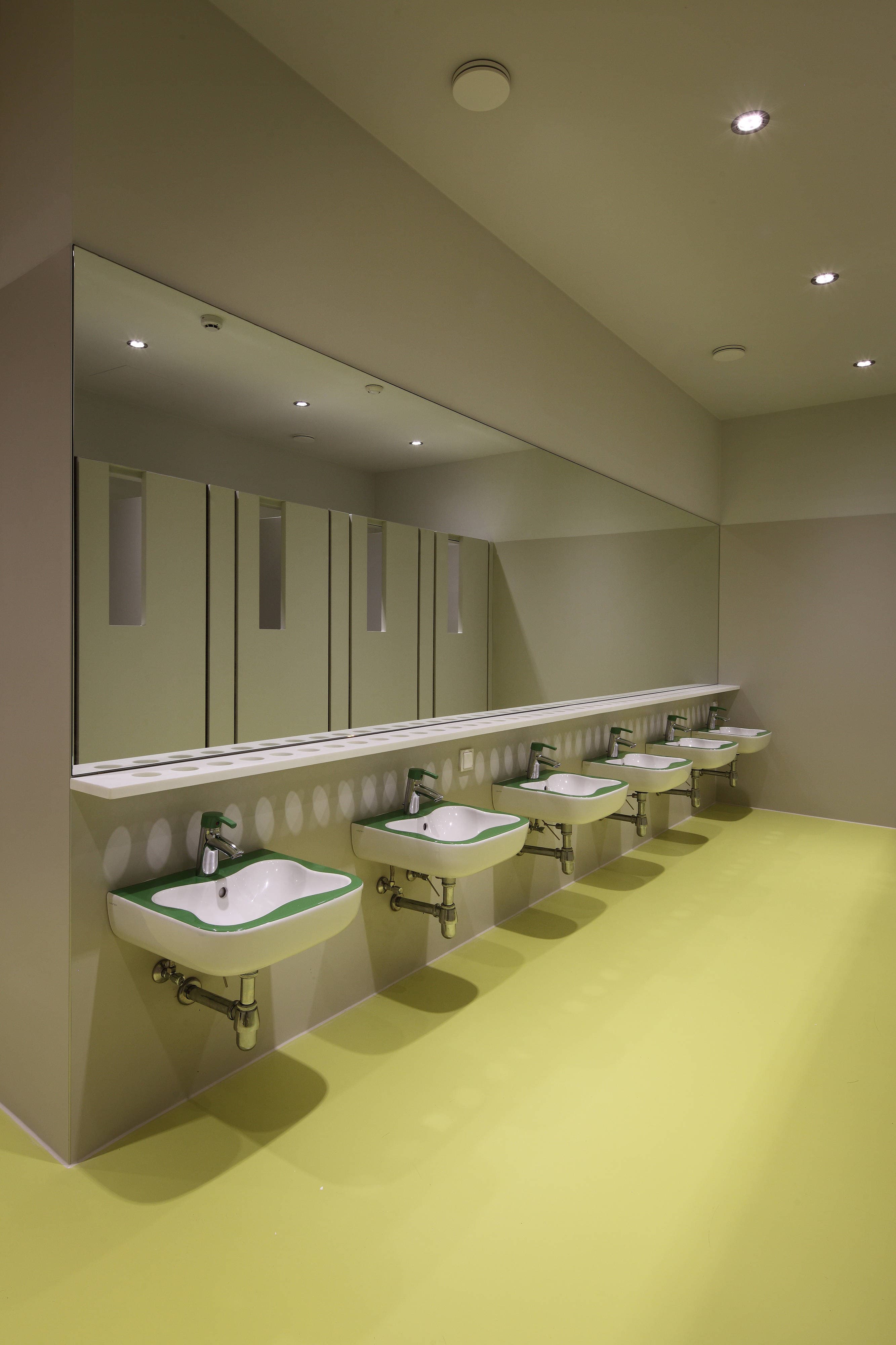 In dem stark zersiedelten Gebiet bildet der zweigeschossige Neubau durch seine Größe ein Bindeglied zwischen dem dreigeschossigen Schulbau und der umgebenden, kleinteiligen Siedlungsstruktur.
