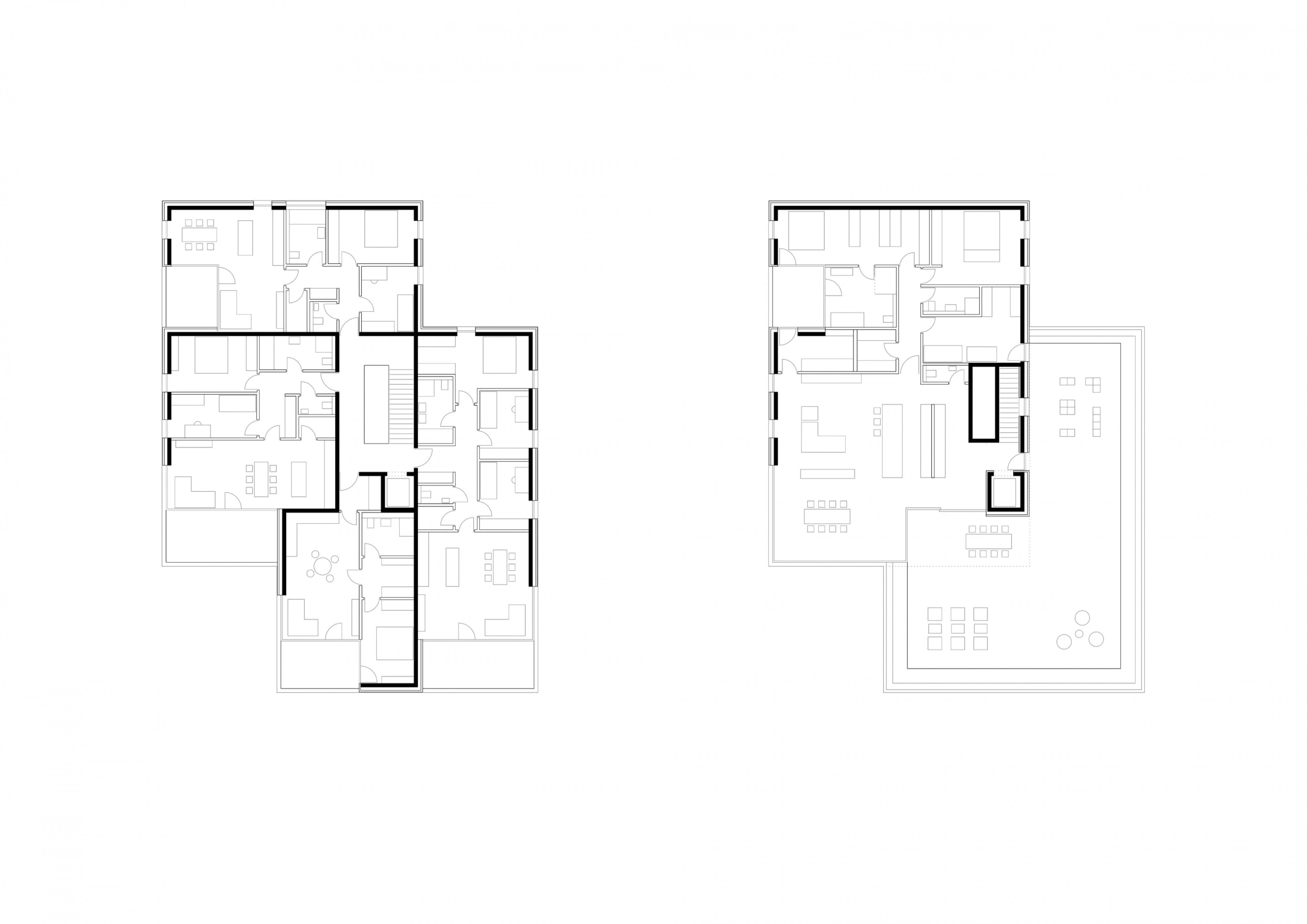 Als Antwort auf die bestehende Umgebung fügt sich ein gegliederter Baukörper in den Hang, der im Besonderen auf Topographie und Körnung der Umgebung reagiert. Dabei verbinden sich zwei wohlproportionierte und in der Höhe gestaffelte Kuben zu einem ortsverträglichen Baukörper zusammen. Dieser tritt auf Grund der Hanglage drei- bzw. viergeschossig in Erscheinung.