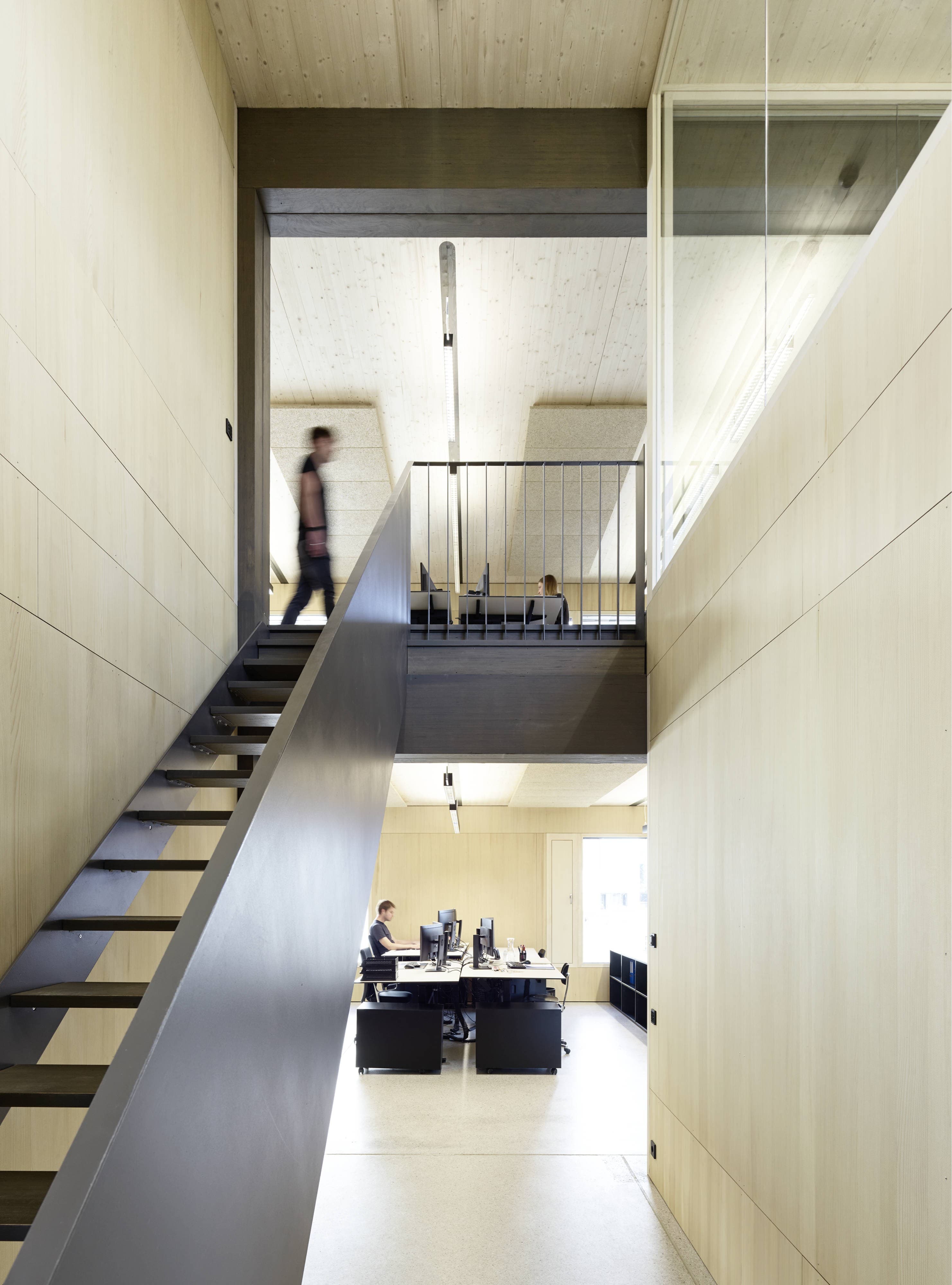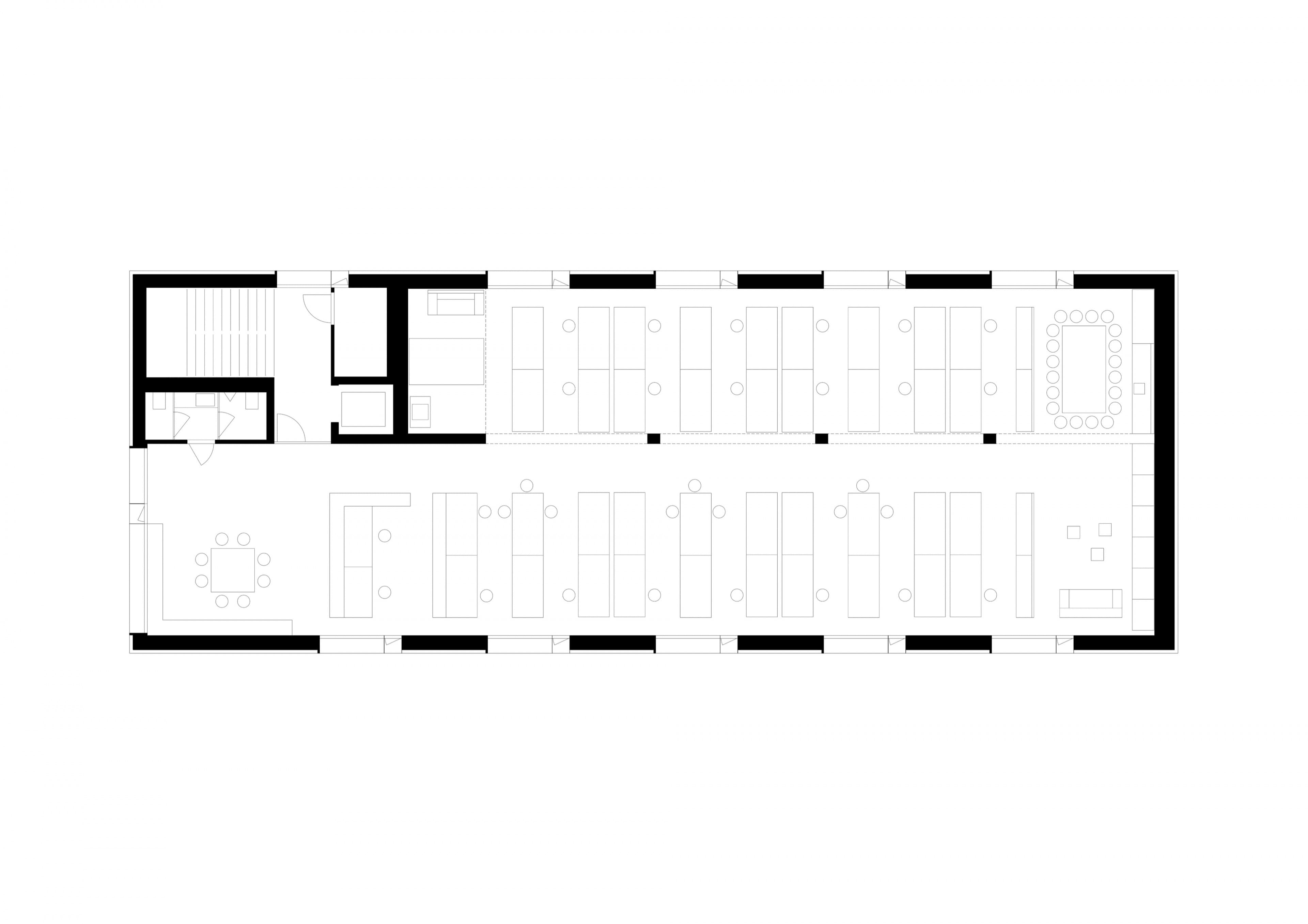 Auch das neue Gebäude soll sich ändernden Nutzungen gerecht werden. Ein Büro schaut vielleicht jetzt anders aus, wie in 70 Jahren. 5 mehr oder weniger identische Geschoße sind durch ein an der Ecke liegenden Treppenhaus erschlossen. Die angeschlossenen Geschoßflächen von 350 m2 können individuell eingerichtet und unterteilt werden. Es ist weder auf Stützenraster noch auf den Rhythmus der Lochfassade Rücksicht zu nehmen.