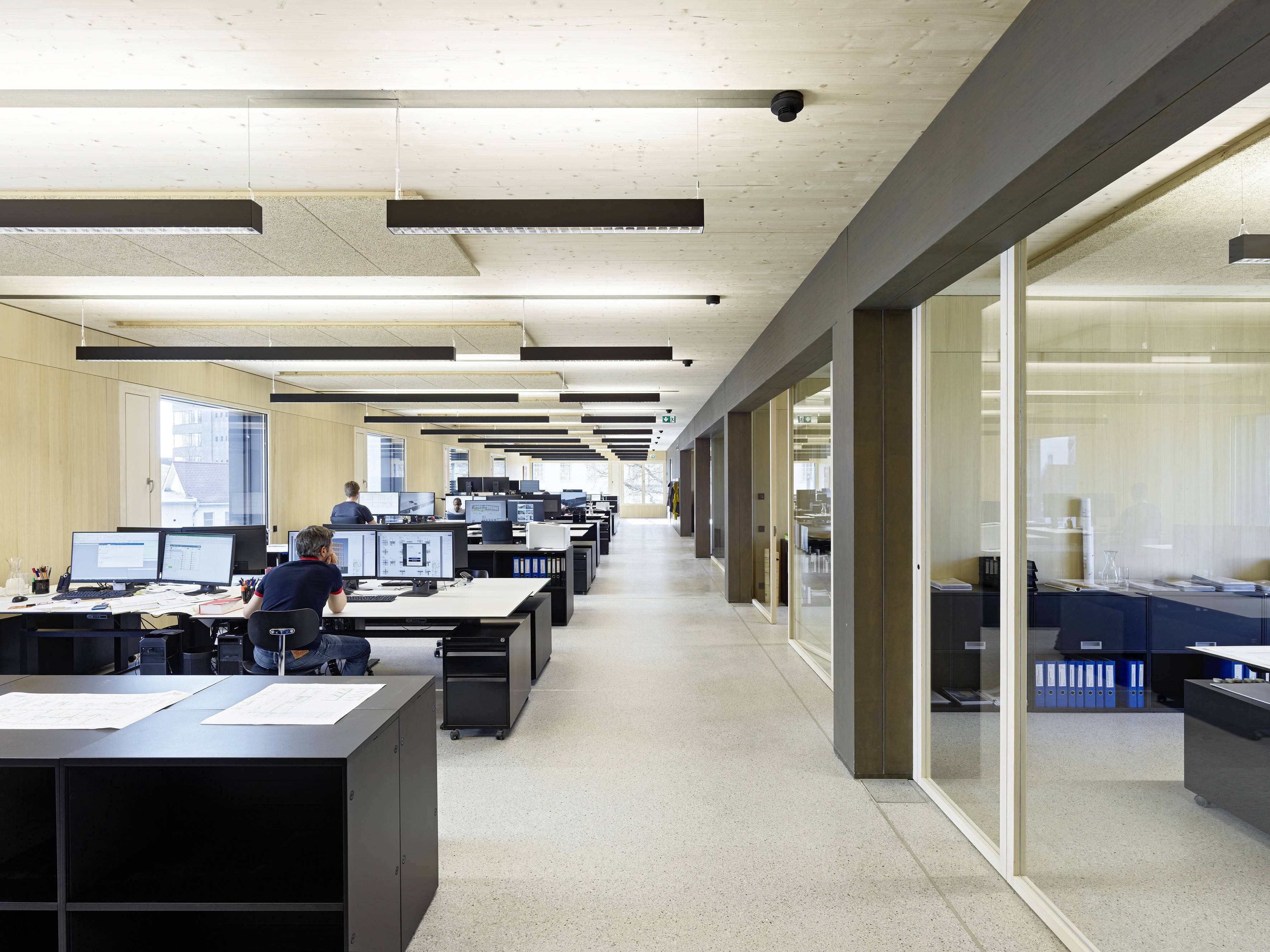 Die Latte lag hoch. Wir hatten das Glück, 25 Jahre ein wunderschönes, über 125 Jahre altes ehemaliges, mehrgeschossiges Industriegebäude als architekturschaffende zu mieten. In diesem Jahrhundert hat das Gebäude viele Nutzungen erfahren. Die Webmaschinen der Textilindustrie wurden von Unterrichtsmöbeln und Zeichentischen abgelöst. Und immer noch hat das Gebäude funktioniert. Ein Stützenraster auf die damaligen Möglichkeiten von Spannweite und Handwerk abgestimmt, eine Lochfassade mit üblichen Industrieverglasungen zeugen von intelligenten Strukturen, die alleine schon durch ihre Langlebigkeit sehr nachhaltig sind. Nebenbei sind diese Gebäude schön, und wichtige Akzente im Stadtraum.
