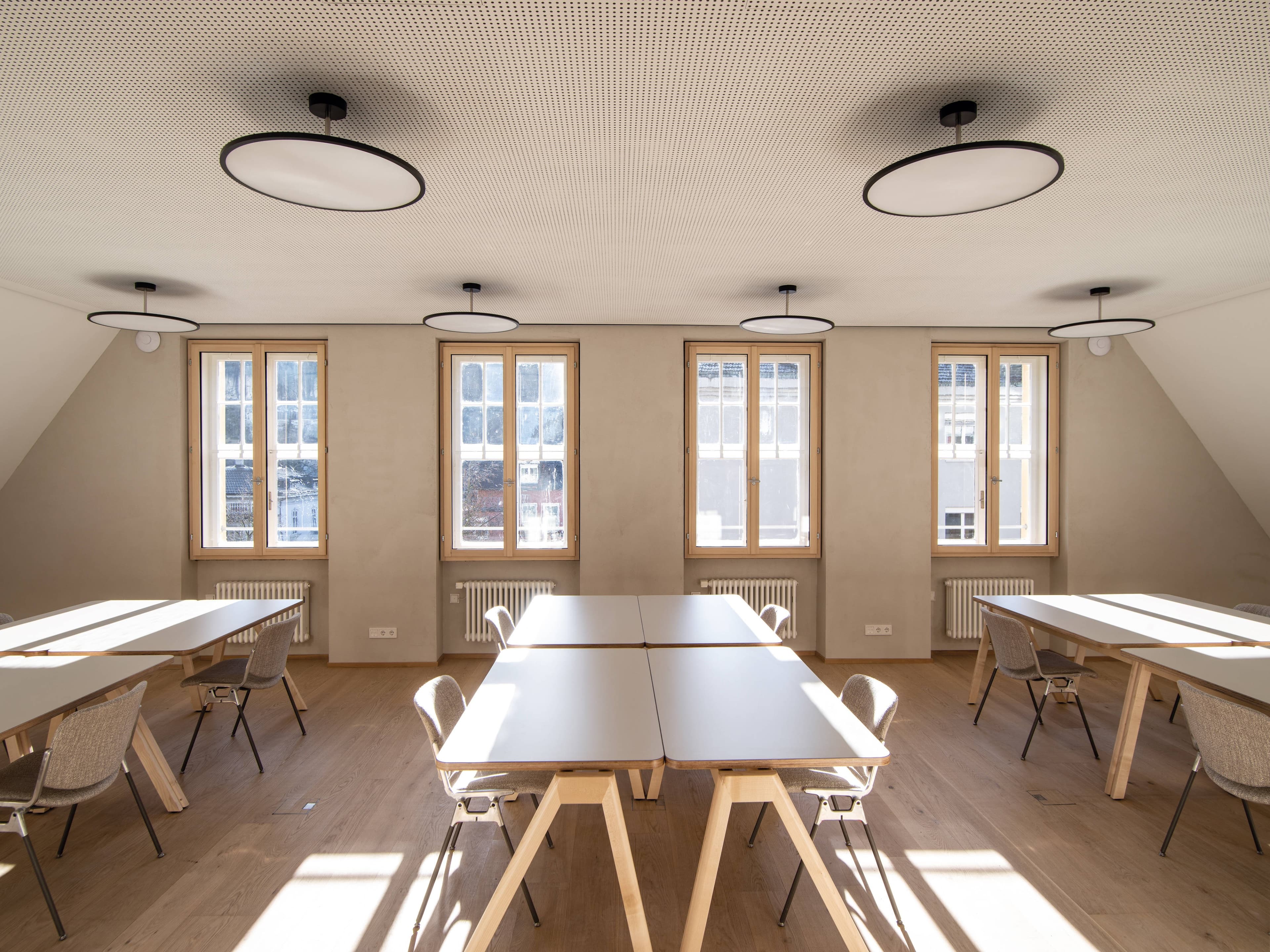 Der Digital-Campus Schafferei vervollständigt das städtebauliche Ensemble mit dem benachbarten AK-Gebäude und ermöglicht Kommunikation und Ausbildung auf moderne Art und Weise.