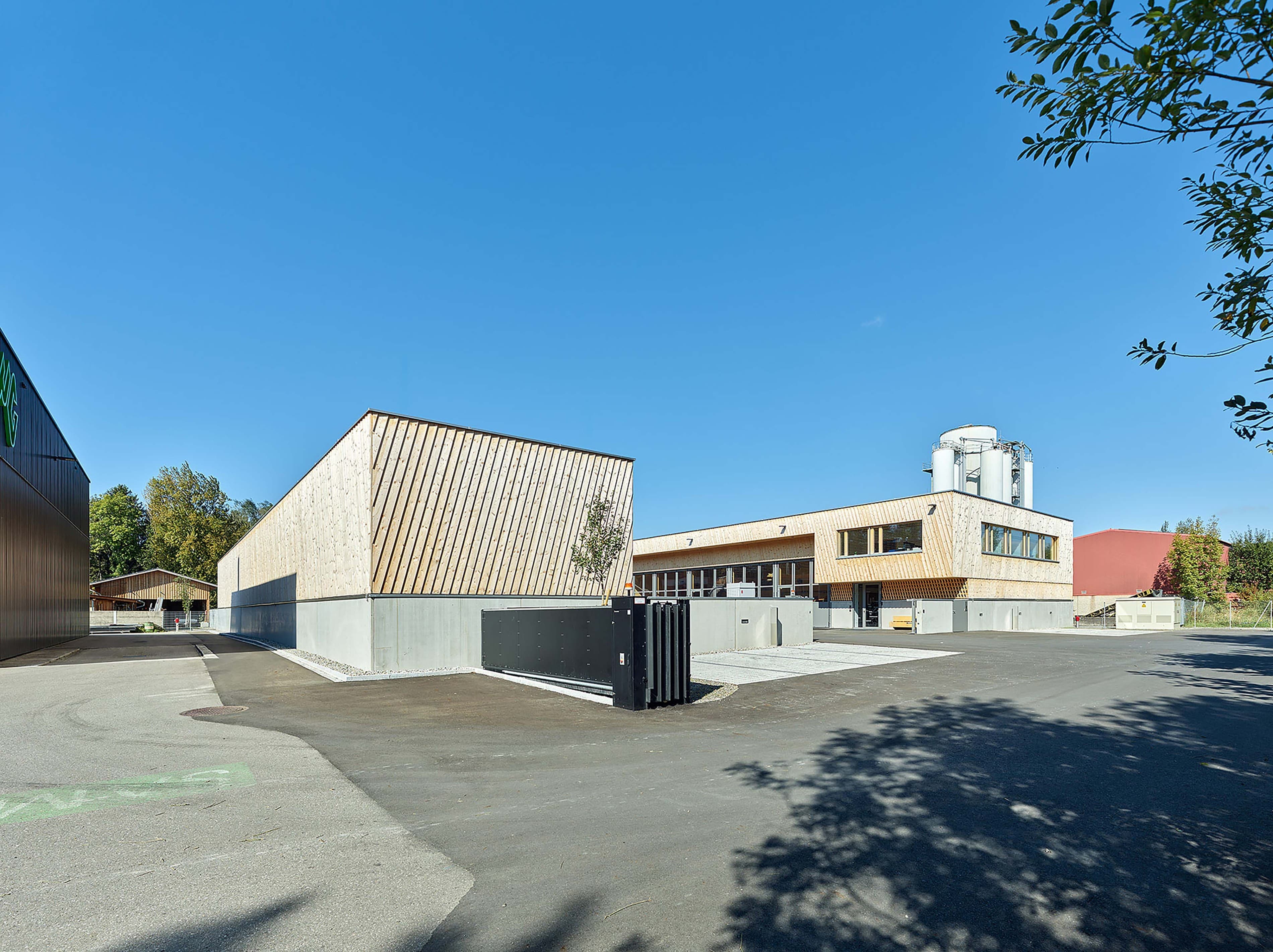 Am Rand eines Industriegebiets in Koblach wurde auf einem nahezu rechteckigen Grundstück eine kompakte Anlage realisiert, die verschiedene Nutzungen in wenigen klar strukturierten Baukörpern vereint. Diese treten als zusammenhängendes Ensemble in Erscheinung und orientieren sich in ihrer Setzung an funktionalen Abläufen und einer klaren räumlichen Ordnung.