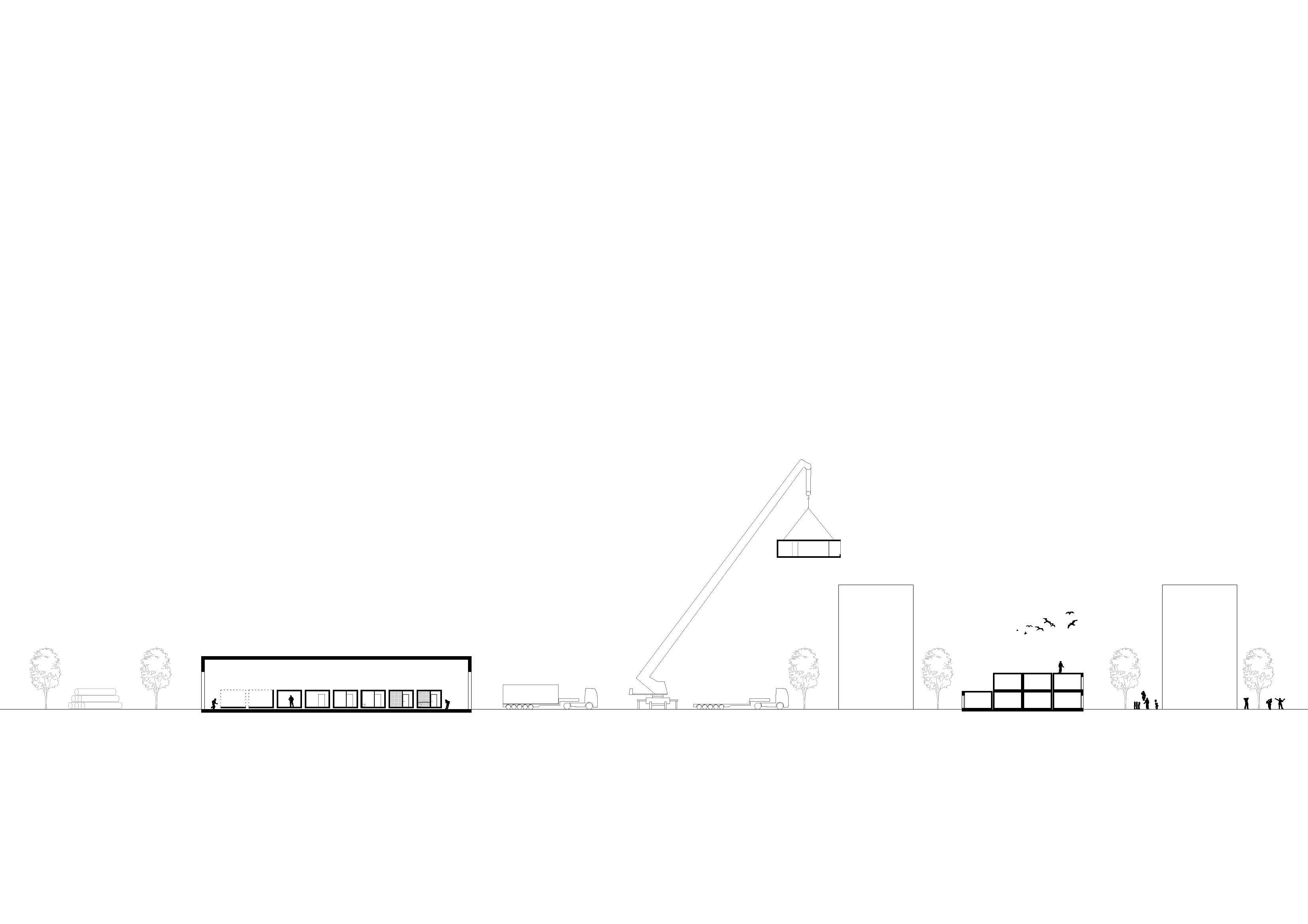 Der Bauablauf ist bei der Nachverdichtung im städtischen Kontext oft eine große Herausforderung. Beim konventionellen Bauen entstehen über die Bauzeit Emissionen, wie Lärm und Staub, denen die Nachbarschaft relativ lange ausgesetzt ist. Die Vorfertigung und insbesondere der Modulbau bietet hier eine Möglichkeit die Bauzeit vor Ort drastisch zu verkürzen. Außerdem werden die Lärmbelastungen auf ein Minimum reduziert.