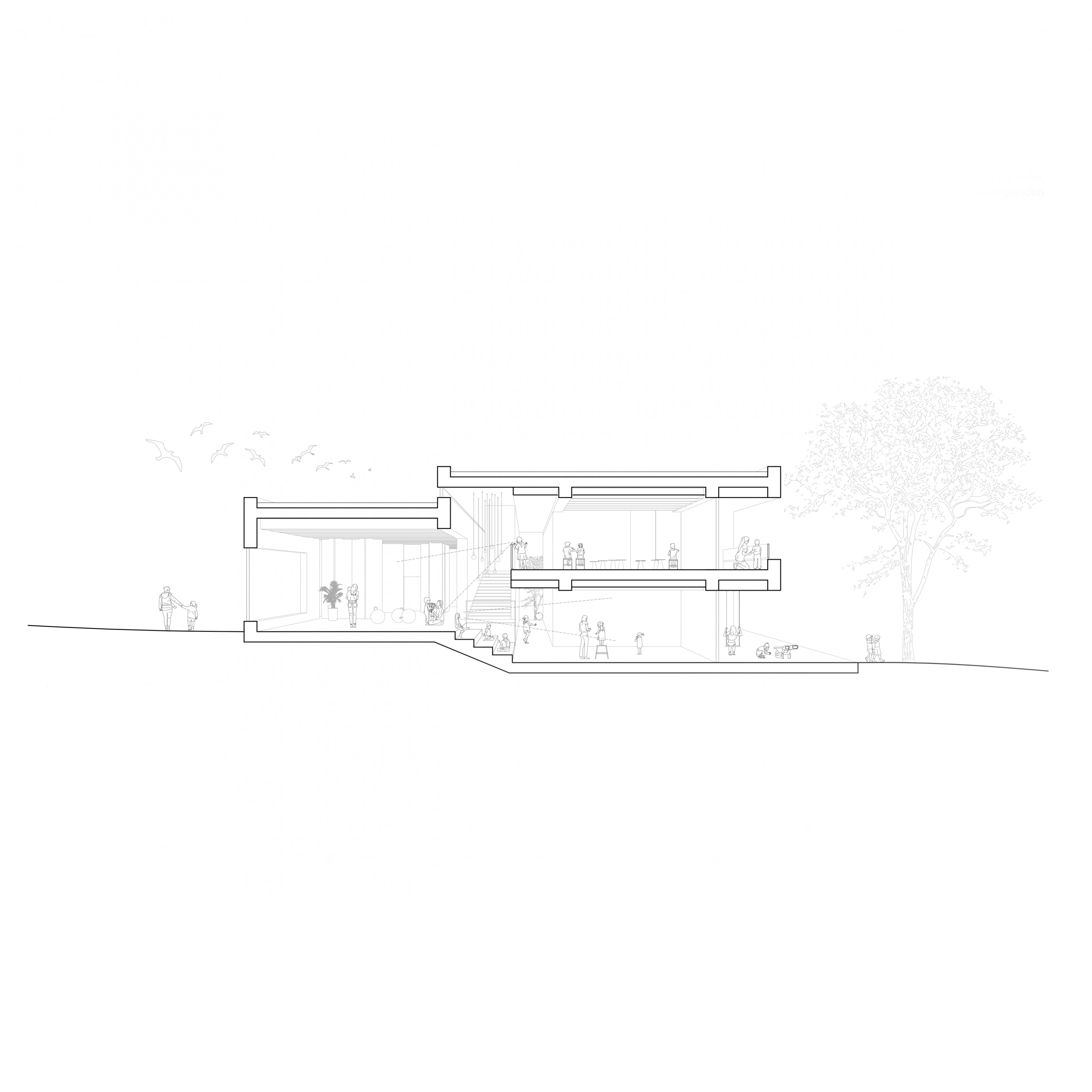 Über eine sehr feine Fassadenausbildung und die Staffelung der Baukörper wird eine erfreulich ansprechende Anmutung erzeugt. Mit dem Entwurf schlägt der Verfasser unter gekonnter Einbeziehung der topographischen Situation bei hoher Funktionalität einen städtebaulich schlüssigen Baukörper vor, der gleichsam mit seinen innen- wie auch aussenräumlichen Qualitäten überzeugt.