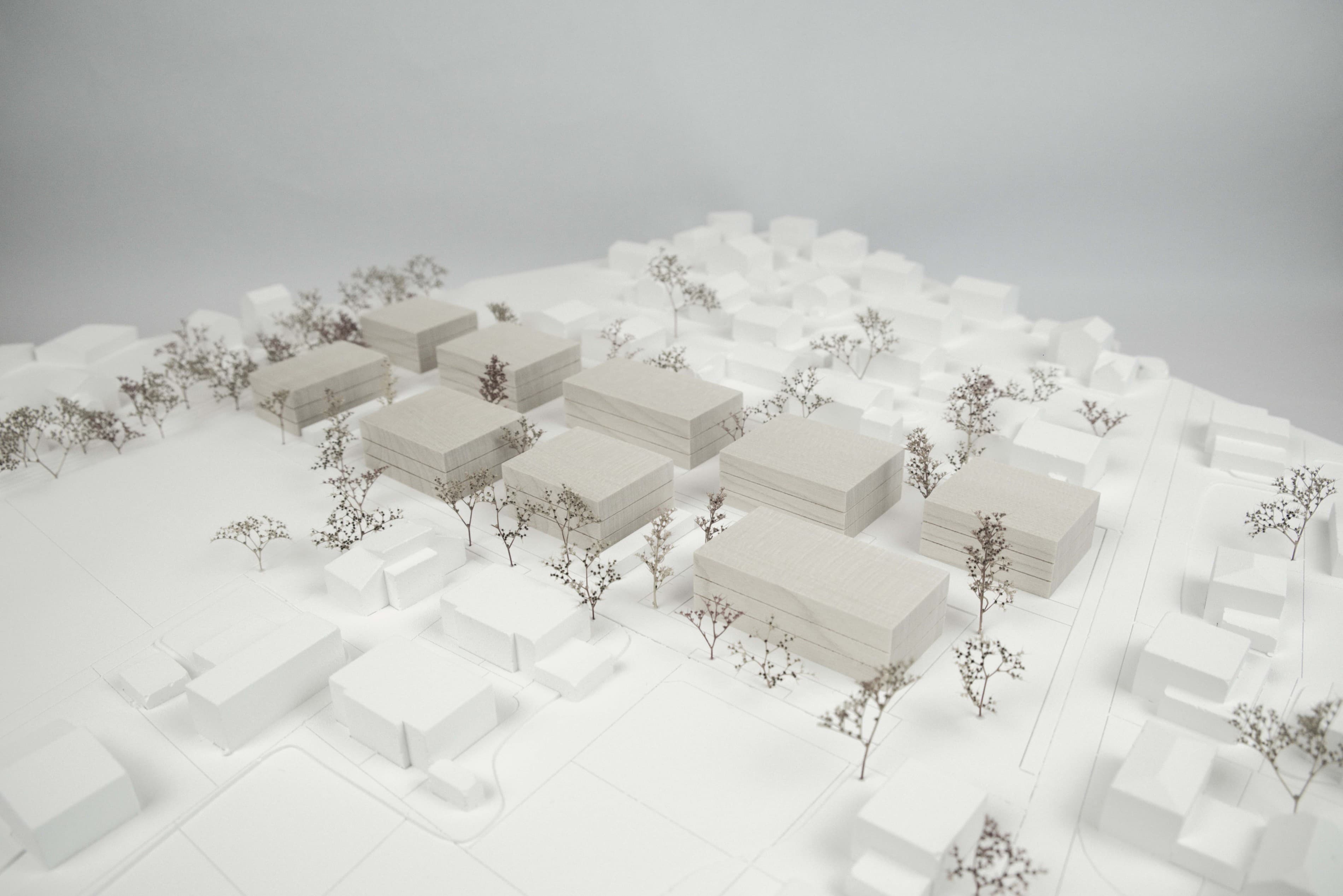 Die bauliche Umgebung ist geprägt von einer kleinteiligen Struktur. Ziel des Studienauftrags ist es, eine qualitätsvolle Wohnungstypologie zu entwickeln, die eine angemessene Verdichtung des Gebiets ermöglicht und gleichzeitig die städtebauliche Eingliederung des Projekts gewährleistet. Die Studie verdeutlicht, dass eine optimale Bebauung durch drei Bauetappen mit gesamt neun Baukörpern erlangt werden kann. Die Bauetappen sind in Bauabschnitten zu je drei Baukörpern mit je 28 bzw. 29 Wohneinheiten konzipiert.
