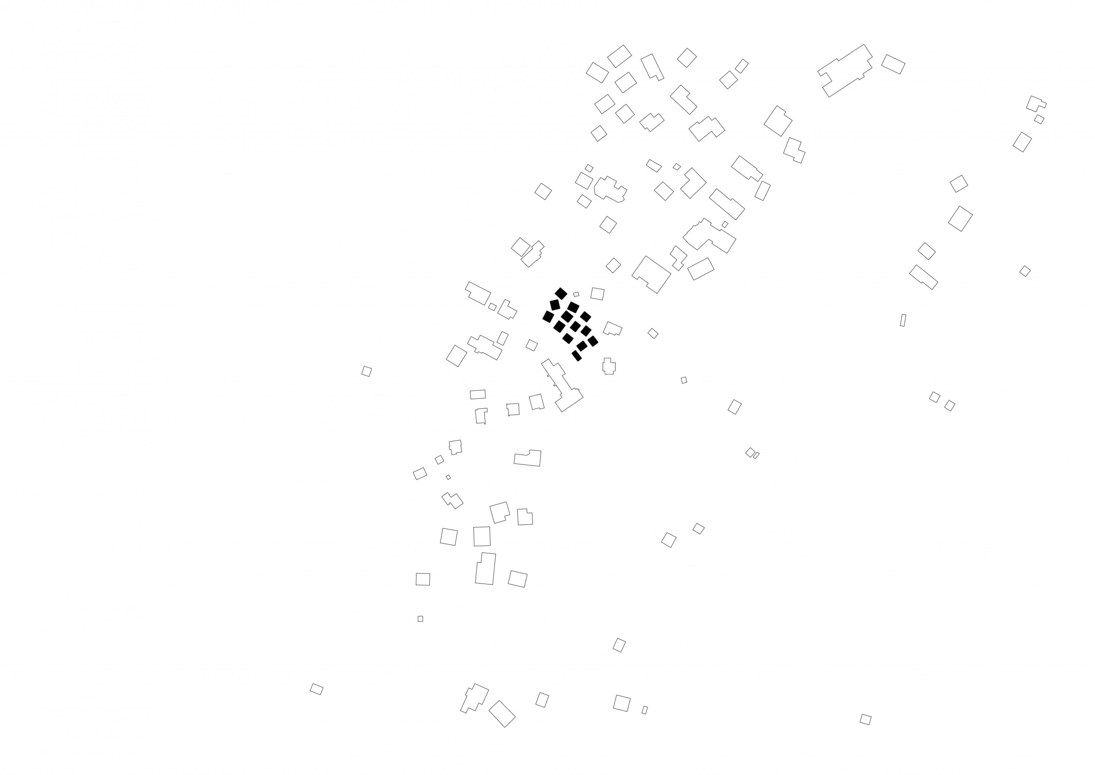 Die Anlage wird über die Landesstraße erschlossen. Im Süden der Anlage sind 10 Stellplätze und ein Versorgungsgebäude situiert. Die zweigeschossigen Hütten werden über einen fußläufigen Weg erschlossen. In der Mitte der Anlage ist ein Platz mit einem Brunnen der zum Verweilen einlädt. Im Erdgeschoß der Hütten befindet sind Kochen, Essen, WC, der Technikraum sowie eine Veranda mit Abstellraum. Im Obergeschoss befinden sich die Schlafräume, das Bad und eine Chill-Zone.
