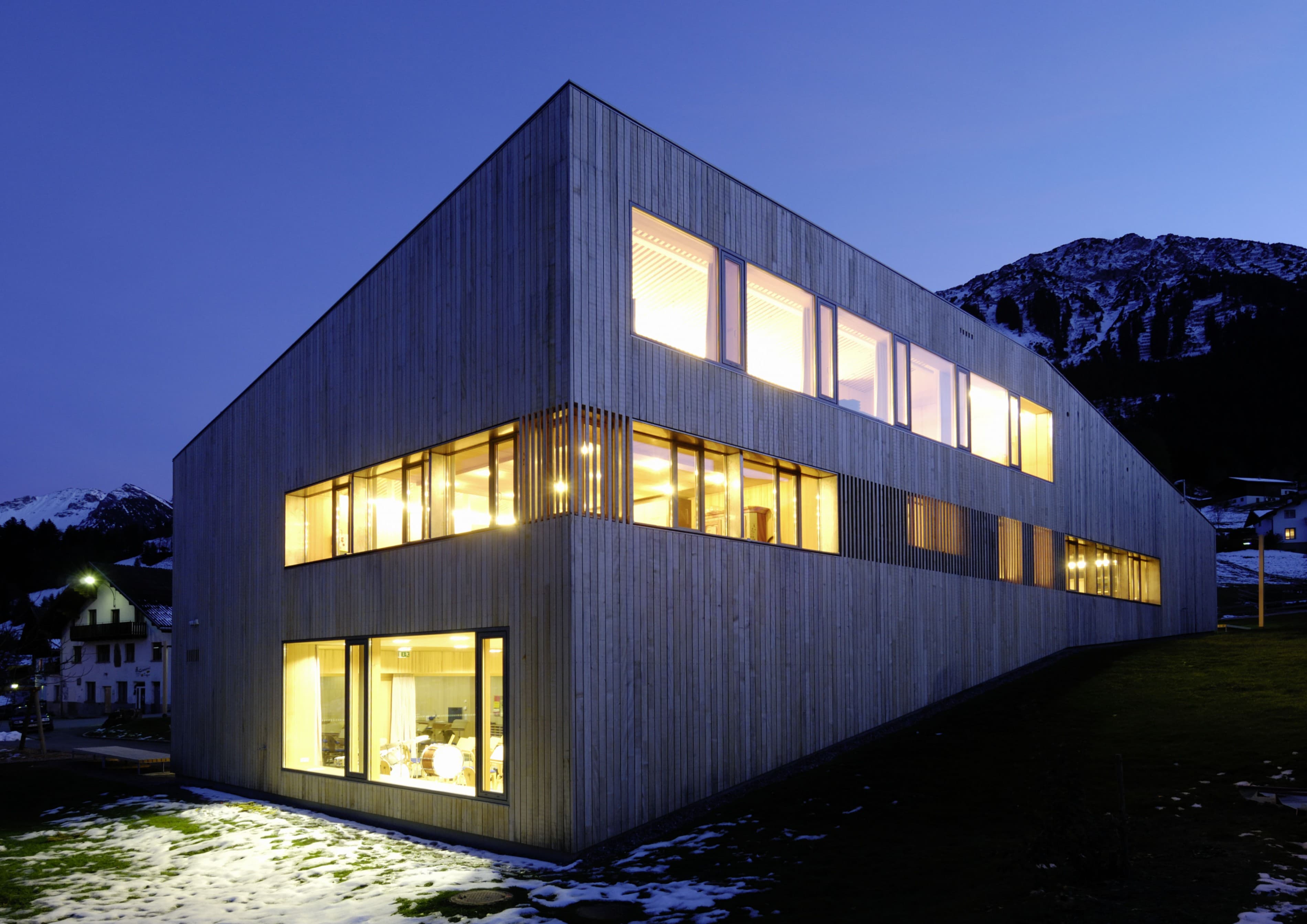 Der Neubau des Gemeindehauses ist zum bestehenden Dorfplatz hin situiert und ergänzt das bestehende Ensemble mit Kirche, Schulhaus und Gasthof. Um die Aussicht vom Kirchplatz taleinwärts möglichst wenig zu beeinträchtigen, wurde an der Straße ein eingeschossiger, nach Norden ansteigender Baukörper situiert. Die Dachform entwickelt sich aus der räumlichen Situation mit dem aufgesetzten Sitzungssaal, der Zuschnitt erzeugt spannende, großzügige Raumsituationen. Das neue Gebäude umfasst Untergeschoss, Erdgeschoss und ein Obergeschoss.