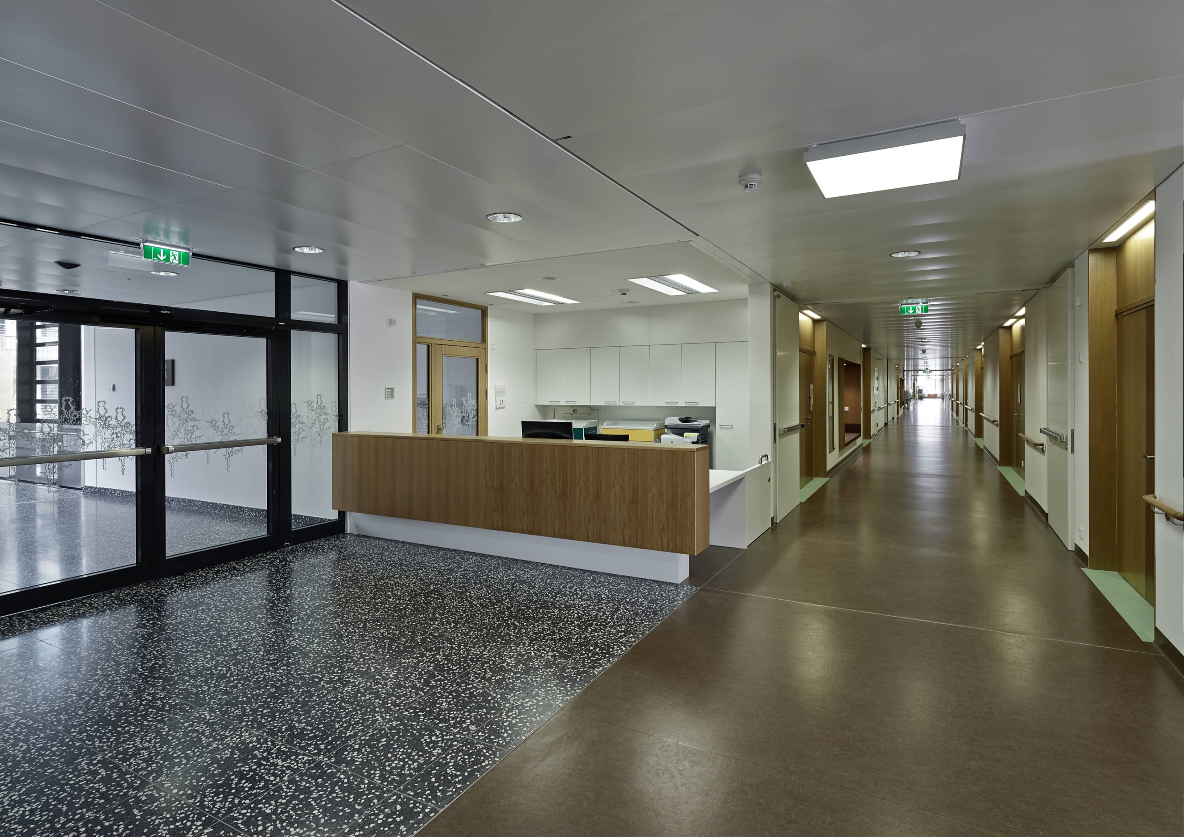 Durch das Abrücken von der Haeckelstraße entsteht als Vorfeld zur Neuen Geriatrie ein breiter Stadtraum, der bereits Elemente des Parks beinhaltet. Das Haus selbst ist als offenes Karree gedacht, das einerseits der Systematik und Maßstäblichkeit des umliegenden Quartiers folgt (strukturelle Merkmale, Baufluchten, Höhenentwicklung) und die Integration sucht. Andererseits entwickelt sich - analog der Nutzung - ein eigenständiger Typus, der im Gegensatz zur Hermetik des historischen Bestandes Offenheit und Transparenz forciert.