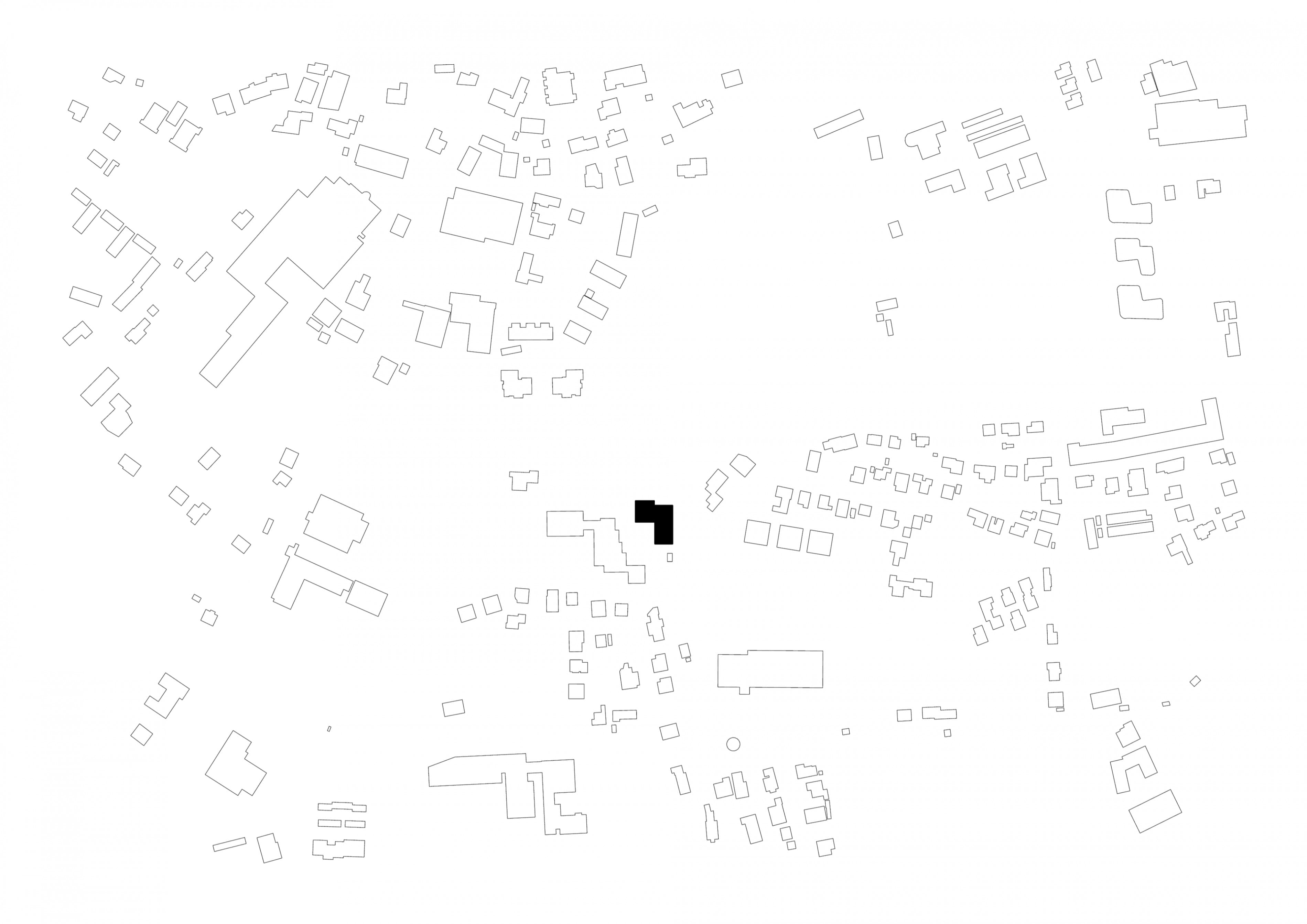 In dem stark zersiedelten Gebiet bildet der zweigeschossige Neubau durch seine Größe ein Bindeglied zwischen dem dreigeschossigen Schulbau und der umgebenden, kleinteiligen Siedlungsstruktur.