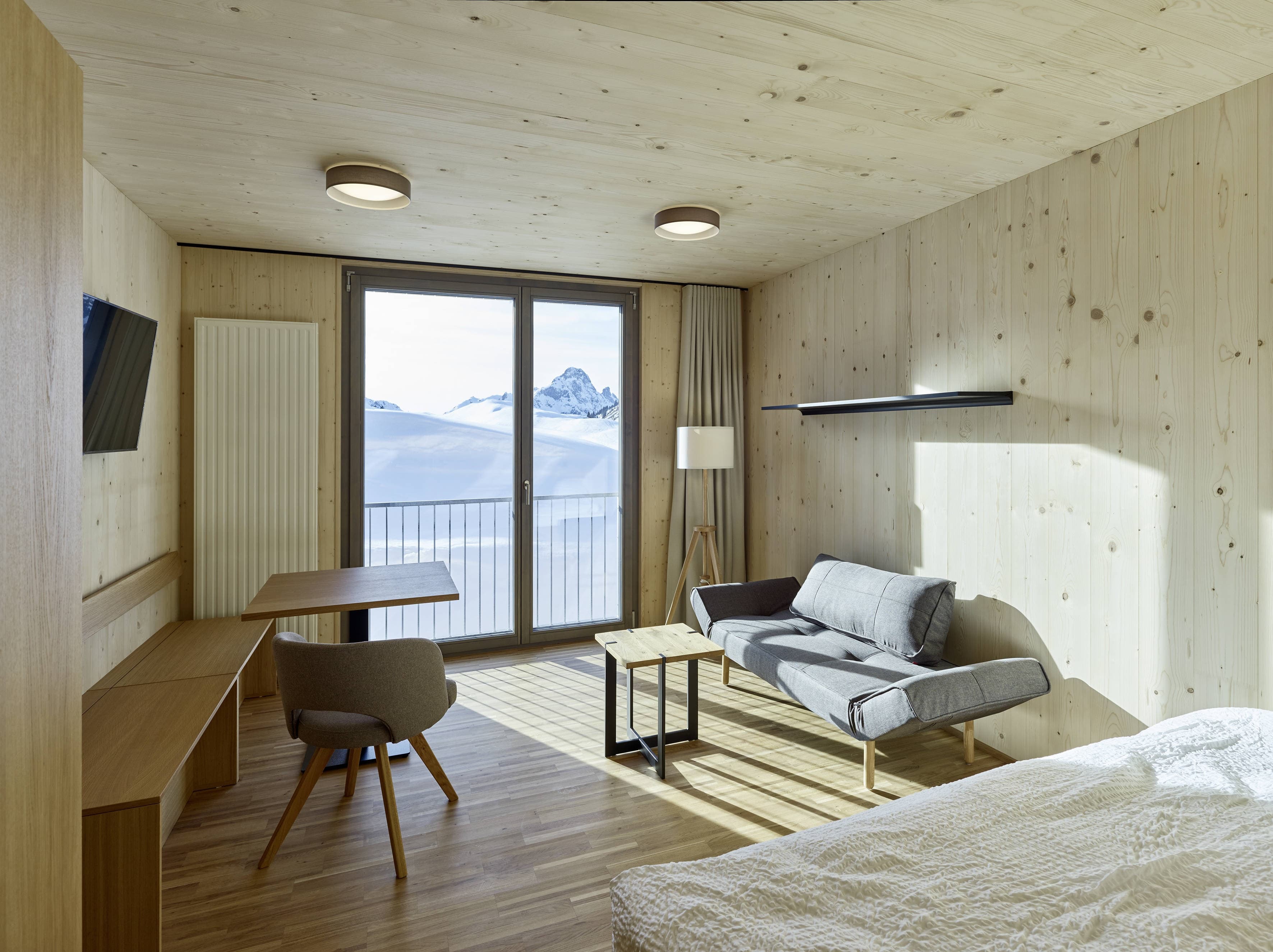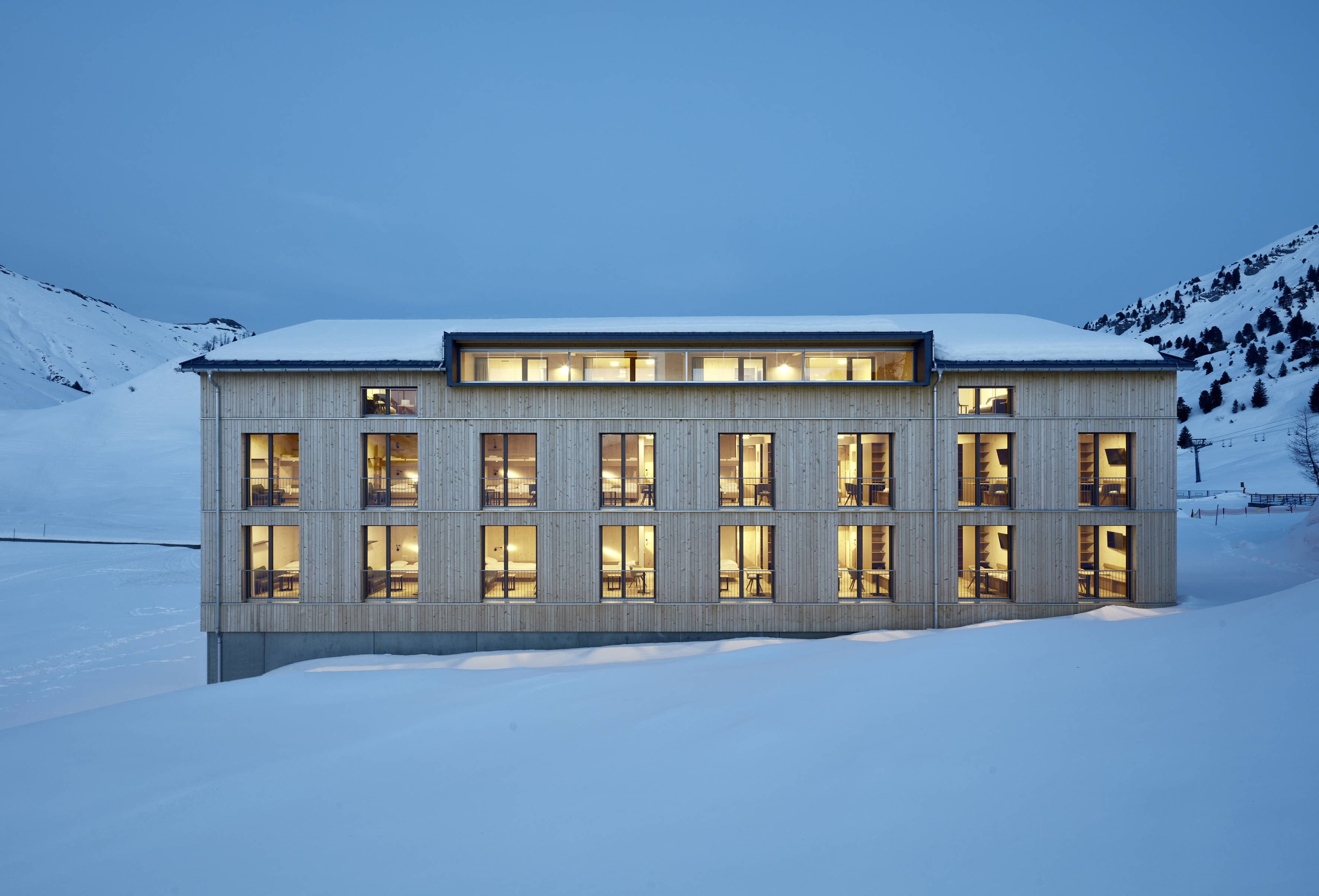 Beim Traditionsskigebiet Salober, im hinteren Bregenzerwald, entstand innerhalb einer Sommersaison ein neues Personalhaus für die Mitarbeiter der Liftbetriebe mit angeschlossenen Restaurants. Die bestehenden Garagen im Erdgeschoss sind um eine Pistenwalzenwerkstätte erweitert worden. Auf diesen massiven Sockel wurden dann 2,5 Geschoße mit 42 Appartements in Holzmodulbauweise gestapelt.