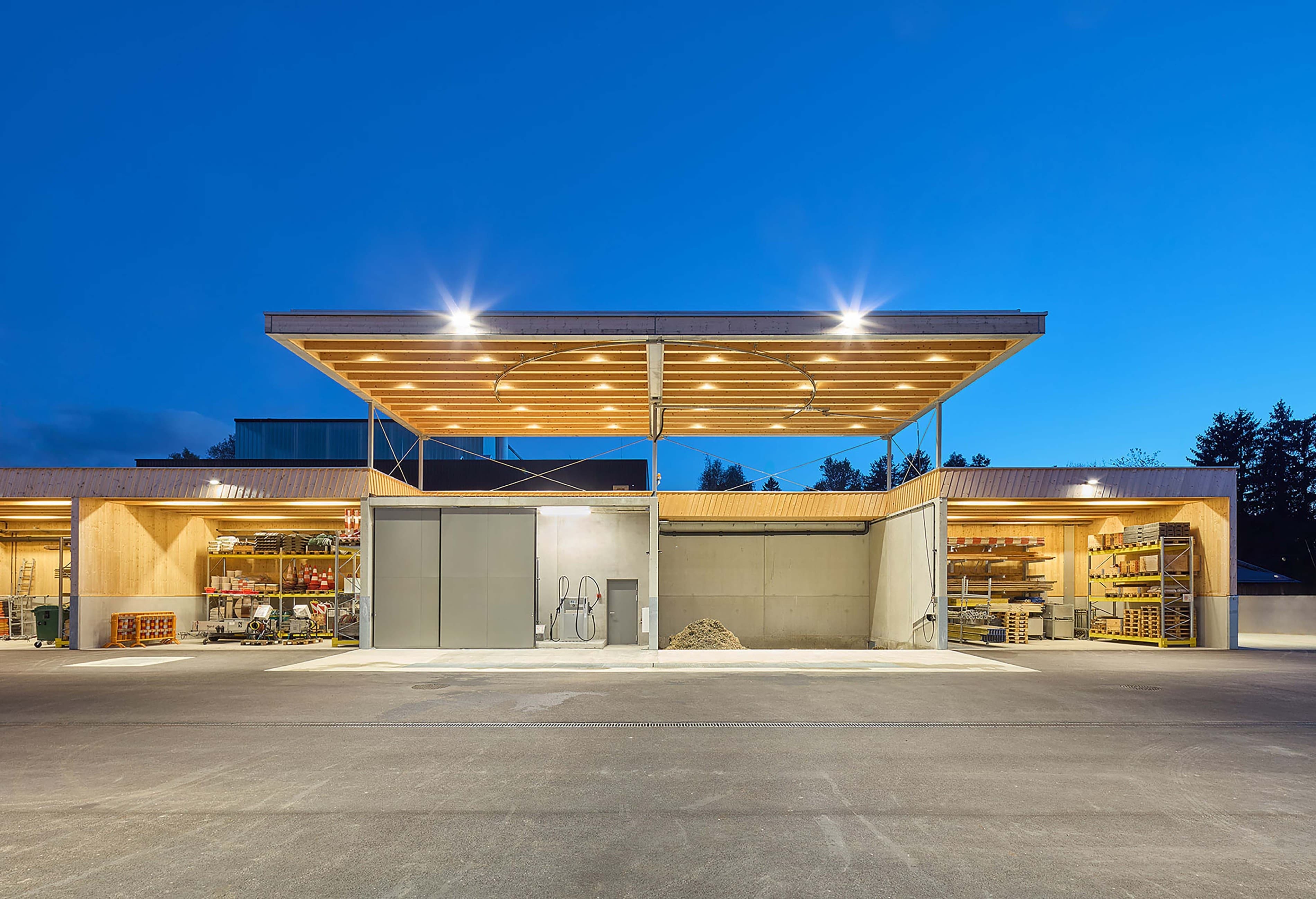 Am Rand eines Industriegebiets in Koblach wurde auf einem nahezu rechteckigen Grundstück eine kompakte Anlage realisiert, die verschiedene Nutzungen in wenigen klar strukturierten Baukörpern vereint. Diese treten als zusammenhängendes Ensemble in Erscheinung und orientieren sich in ihrer Setzung an funktionalen Abläufen und einer klaren räumlichen Ordnung.